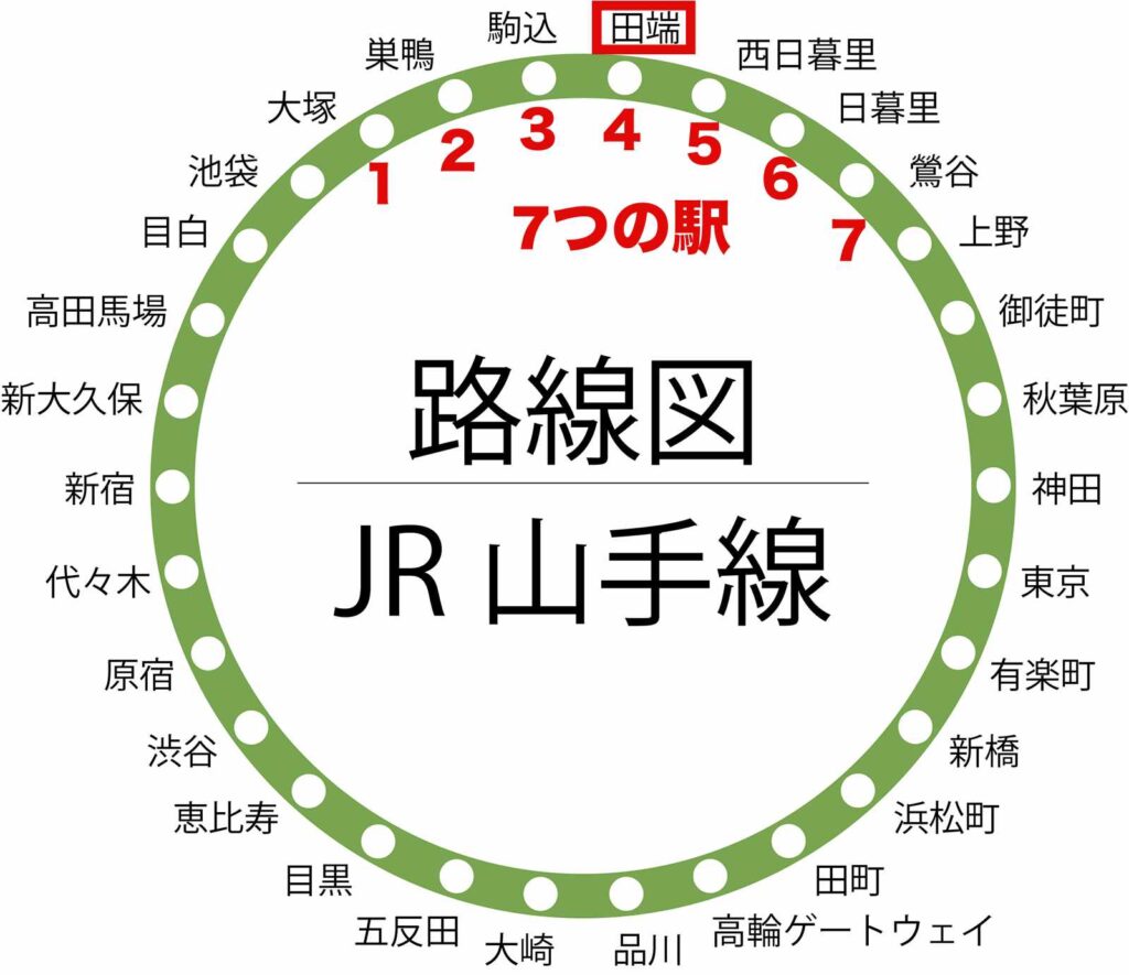 そして次に7つの真ん中の駅「田端」だけを覚えます。
